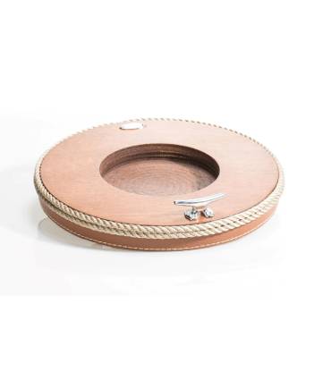 Wooden product with nautical rope and leather accents. Cleat handle.